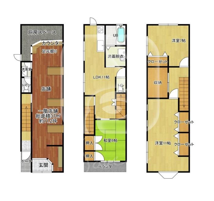 居酒屋居抜きの1階路面店舗+2階+3階(店舗付住宅)です♪♪
