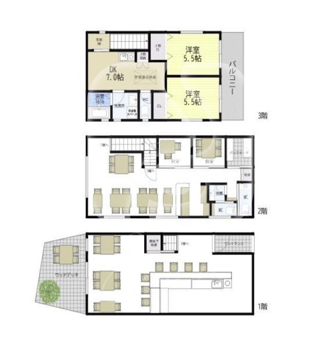 さらに1階はウッドデッキのテラス付き!