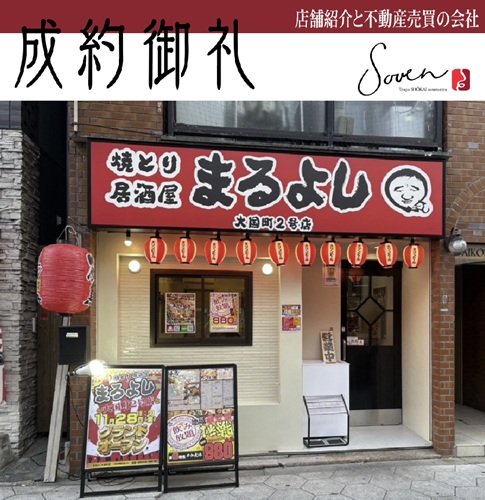 | 店名 | 成約物件『焼とり居酒屋まるよし 大国町2号店』様 |